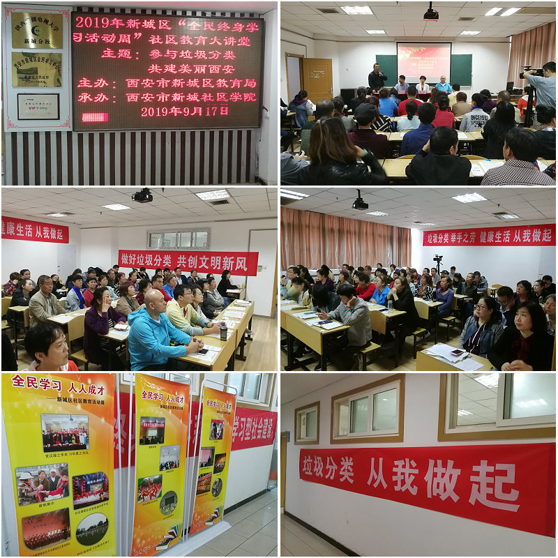 为了迎接一年一度的“全民终身学习活动周”,结合当前全社会正在实行的垃圾分类工作,2019年9月17日10:00,新城社区学院社区教育大讲堂邀请了西安市新城区环保专家许世豪举办了主题为“参与垃圾分类共建美丽西安”的专题讲座。学院全体职工及附近社区60余名社区干部、群众参加了讲座。