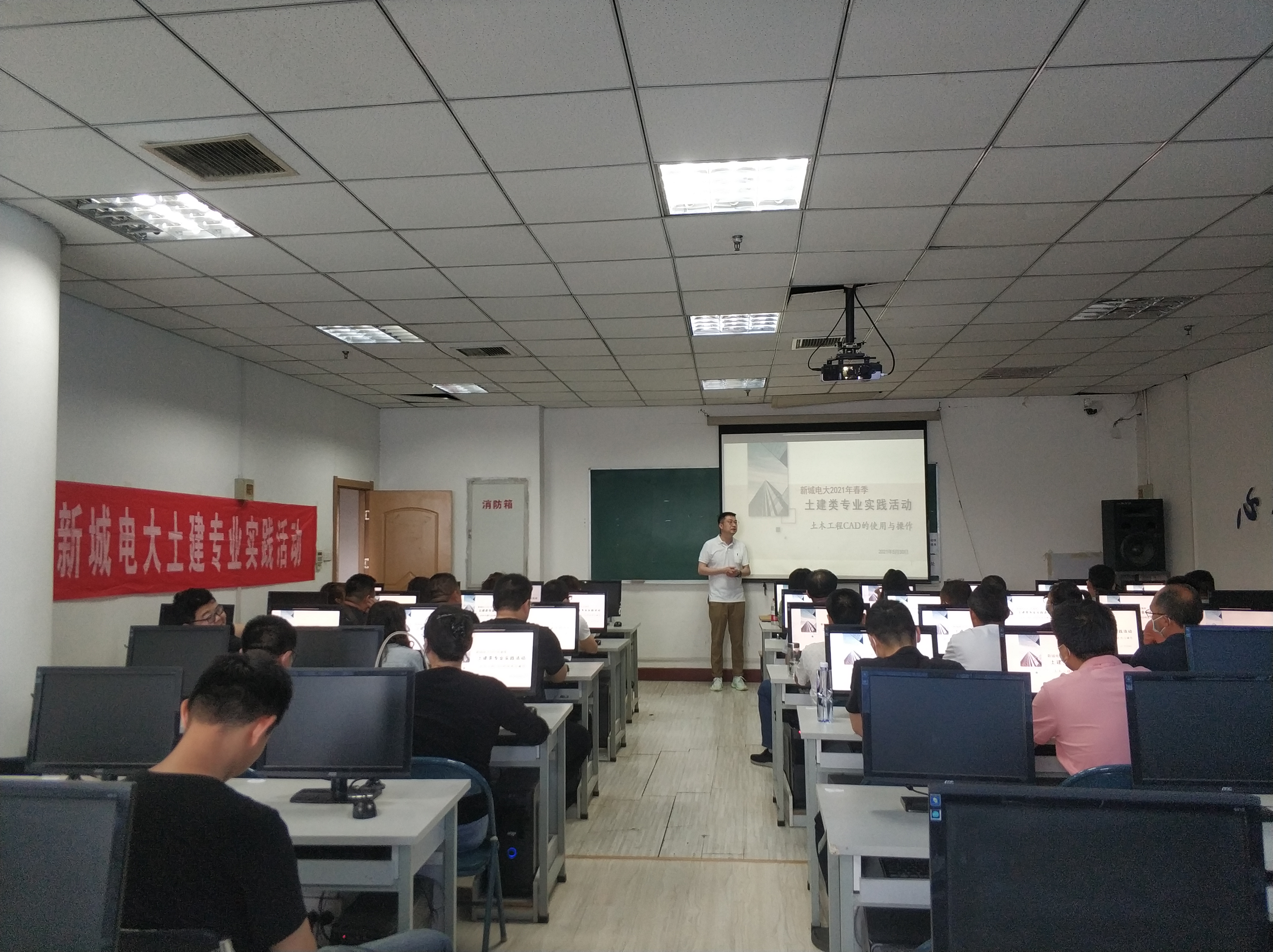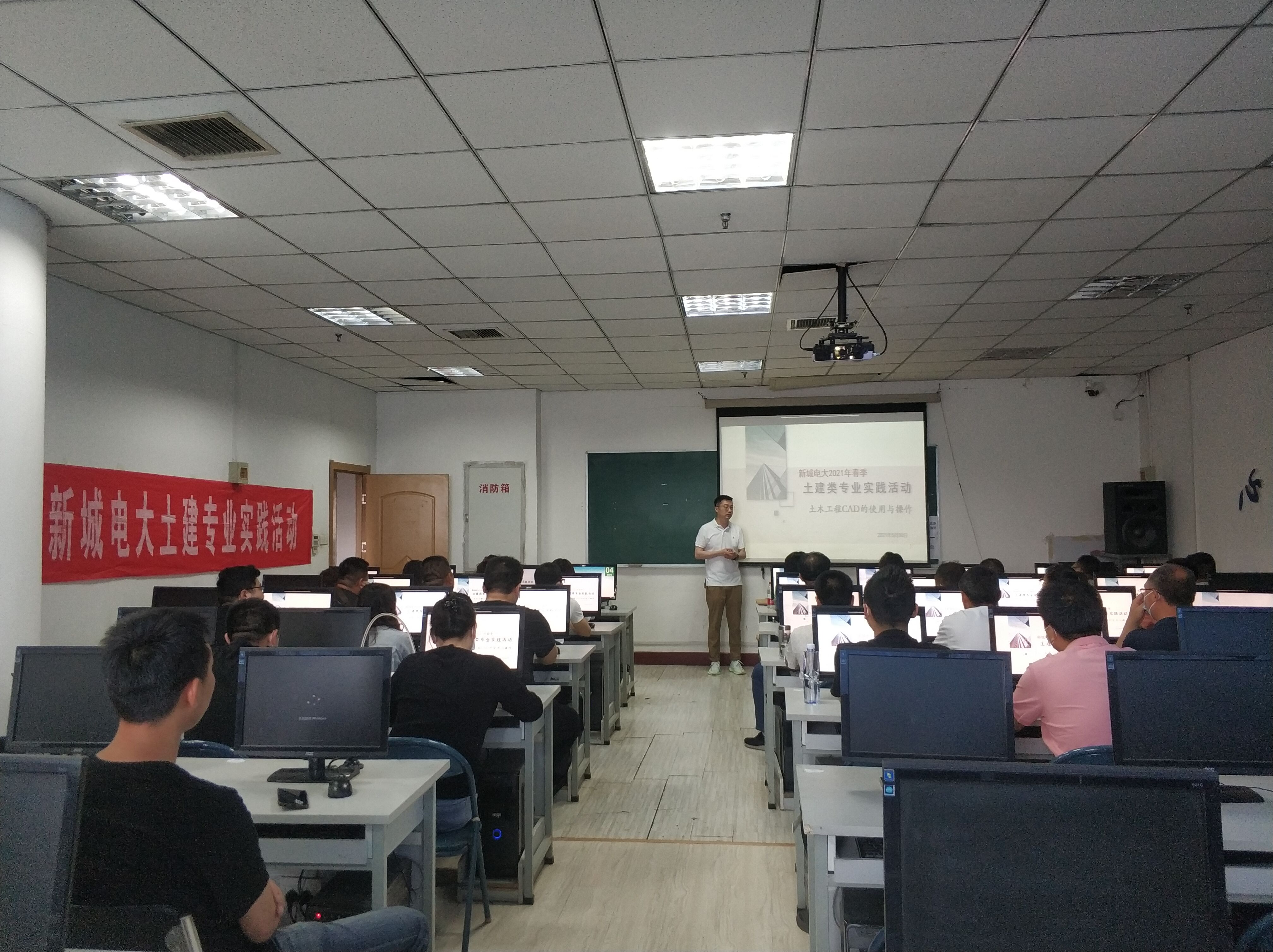 为了进一步提高我校土建专业学生实践动手能力,增强学习兴趣。5月30日上午,我校进行了《土木工程CAD的使用与操作》实践课程。本次课程特邀西安工业大学土建专业陈翔老师进行。课上陈老师给学员们介绍了计算机绘图软件的相关知识以及如何利用CAD软件进行绘图。同时在老师指导下,按要求进行了动手实操。在绘图操作过程中,学员们表现积极,互动热烈。课后,按要求把自己完成的CAD图上交学校教务处,学校就此对学员本次学习效果进行检查、考核。
