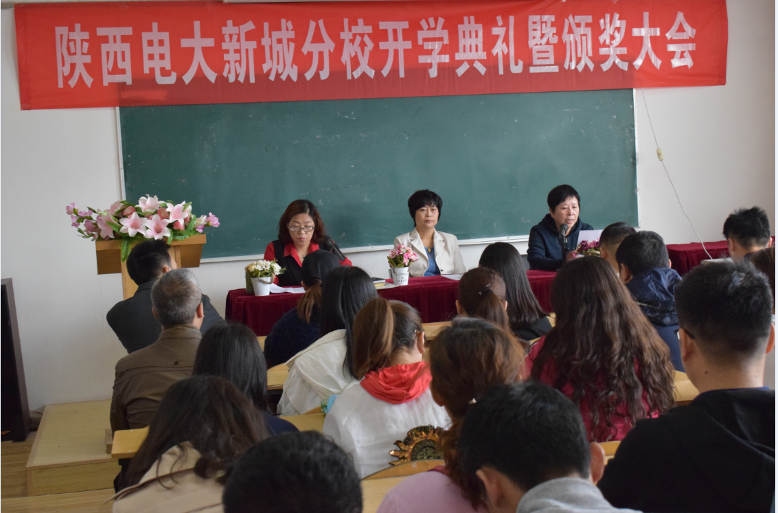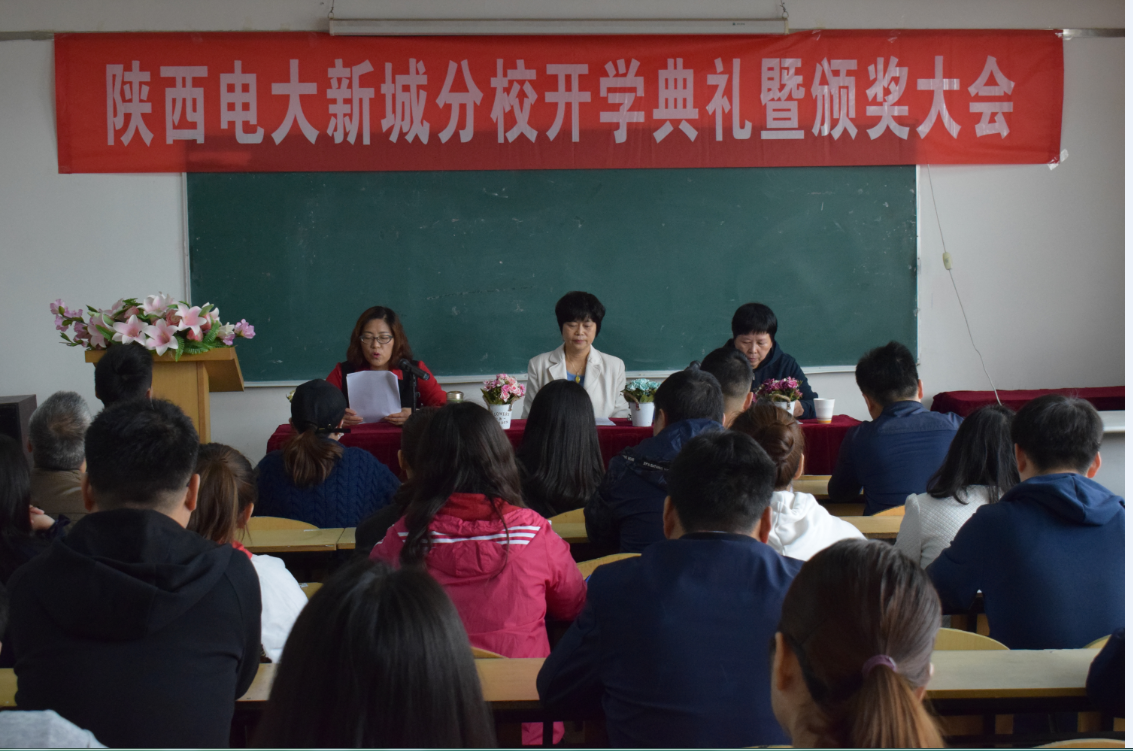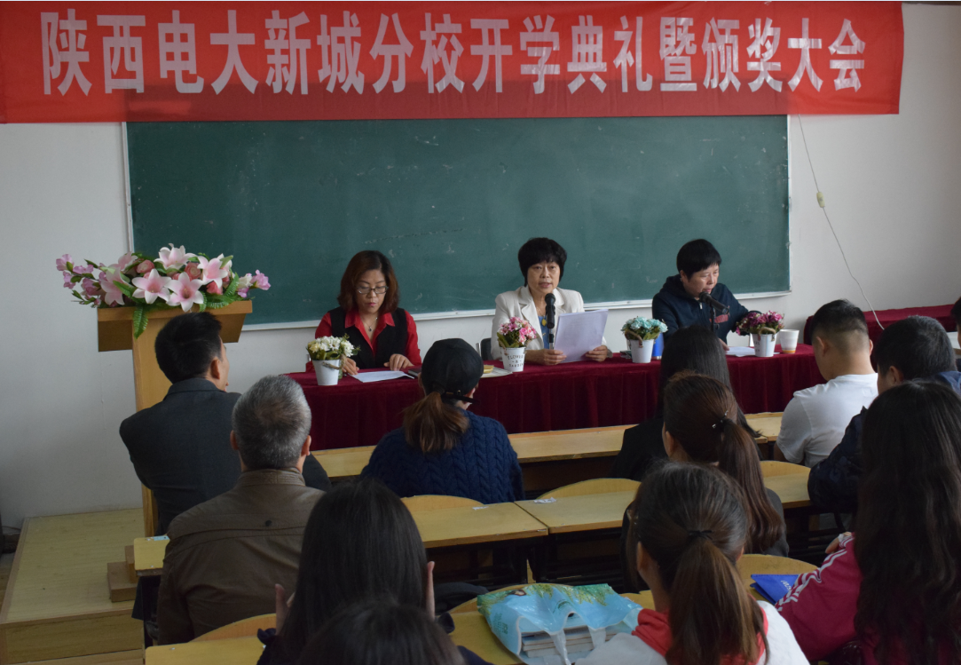 2019年4月14日上午09:30我校隆重举行了2019春新生开学典礼暨2017年度国家开放大学奖学金颁奖大会,颁奖典礼由康芳琴副校长主持。副校长彭丁、副校长仝宝珠、学生处主任张海蓉等领导出席了开学典礼。